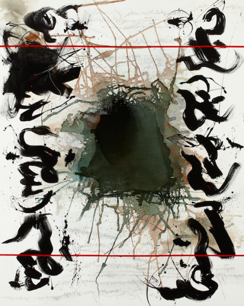 After completing studies in graphic design at the Islamic Azad University in Tehran, Golnaz Fathi (b. 1972 in Teheran, IR) trained in traditional Persian calligraphy and in 1995 was named Best Woman Calligraphist by the Iranian Society of Calligraphy. In large-format paintings and ink works on paper, Fathi combines traditional and contemporary elements, calligraphy, abstract written characters, and gestures. Her works are inspired by Abstract Expressionism as well as by artists from Iran and the Middle East who began in the late 1950s and early 1960s to employ the written word as a pictorial element. In her more recent works, Fathi also integrates elements of an urban graffiti aesthetic: spray paint, scratches, and overwriting as a conscious reference to the street art of Tehran and her own variation on “calligraffiti.” Fathi’s works have been shown at International Sharjah Calligraphy Biennial (2010); the Sundaram Tagore Gallery, New York (2022); and the October Gallery, London (2023). They are found in important collections internationally, including: the British Museum in London; the Metropolitan Museum of Art in New York; Islamic Arts Museum Malaysia; Asian Civilisations Museum, Singapore; Denver Art Museum; Devi Art Foundation, New Delhi; and the Farjam Foundation, Dubai.
