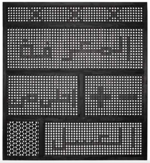 Susan Hefuna (b. 1962 in Berlin, DE) lives and works in Düsseldorf, Cairo, and New York. The daughter of an Egyptian father and a German mother, she grew up with two cultures, languages, and writing systems. She graduated from the Städelschule in Frankfurt am Main in 1992. In her installations, drawings, textile works, sculptures, videos, and performances, Hefuna references architectural and urban structures, for example, public places such as crossroads or so-called mashrabiya—the ornamental latticework in windows of historical Islamic architecture— which in her work can also be understood as representing social structures. Her works play with questions of inside and outside, privacy and publicness, visibility and hiddenness in their inherent ambiguity and porosity, their modular grids, graphic networks, and delicate volumes of shadow. They convey statements and single words in Arabic, English, and German, and sometimes lines from songs by the Egyptian singer Om Kalsoum. In this context, script functions not only as communication but also as sign and symbol—for example, in the form of crosses, arrows, and plus and minus signs—that are rhythmically embedded into the grids: sometimes legible, sometimes as an ornamental structure. Hefuna’s works have been shown at the Serpentine Gallery, London (2008); in the 53rd Venice Biennale (2009); at the Museum of Modern Art, New York (2010); the Sharjah Art Foundation (2014); and the British Museum, London (2023).