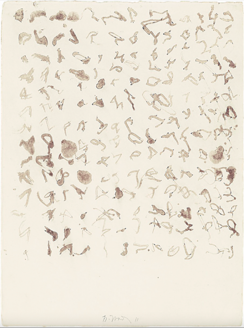 Brice Marden (*1938 in Bronxville, NY, USA; †2023 in Tivoli, NY, USA) divided his time between New York and retreats in Pennsylvania, Hydra, and Marrakesh. He studied at the Boston University School of Fine and Applied Arts (BFA 1961) and at the Yale University School of Art and Architecture (MFA 1963). In New York, he initially worked as a museum guard and, in 1966, as a studio assistant to Robert Rauschenberg – an experience that sharpened his sensitivity to material and surface. Marden’s work evolved from the chromatically restrained, mostly monochromatic canvases of the 1960s and 1970s – oil paintings mixed with beeswax, built up in many layers, with a matte, earthy tonality – toward an increasingly gestural visual language. This early phase sought the “surface” and a quiet concentration; later, the line emerged as a dynamic, rhythmic trace at the center of his practice. Travel played a decisive role, especially to Greece, India, and China. There, Marden immersed himself in calligraphic traditions and poetic concepts, while also drawing inspiration from natural forms – branches, stones, and the structures of Chinese gongshí scholar’s rocks. In his studio, he drew with sticks dipped in ink, developing networks of lines arranged in columns and rows. Color and line fused into layered compositions that oscillate between systems of signs and gestures. The African Drawings (2011–12) represented in the collection, begun in Tanzania, form a late, autonomous body of work: within a fixed 15×15 grid, ink fragments unfold into palimpsest-like densities – a “writing without language” that encapsulates Marden’s decades-long engagement with line, sign, and perception. Marden participated, among others, in documenta 5 in Kassel. Major solo exhibitions have honored his work, including at the Solomon R. Guggenheim Museum, New York (1975); the Museum of Modern Art, New York (2006, traveling to the San Francisco Museum of Modern Art in 2007); Hamburger Bahnhof – Museum für Gegenwart, Berlin (2007); and the Kunstmuseum Basel (2022).