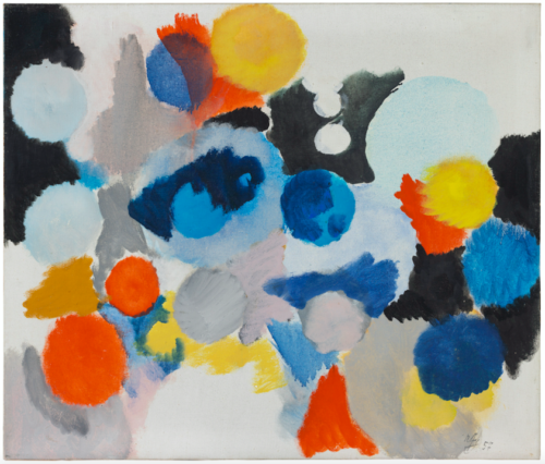 Ernst Wilhelm Nay (*1902 in Berlin, Germany; †1968 in Cologne, Germany) combined powerful color with a musically conceived abstraction, creating pictorial spaces that do not narrate but vibrate and resonate. His painting followed no external order but rather an inner score. Born into a civil servant’s family, Nay turned to art at an early age. After his father’s death in World War I, he began painting autodidactically. In the mid-1920s, on the recommendation of Karl Hofer, he was admitted to the Berlin University of the Arts – a formative step in his development. Travels in the 1930s took him to Bornholm, Rome, and finally to the Lofoten Islands, where the light and landscape left a deep imprint on his visual language. Defamed as “degenerate” under the Nazi regime, Nay lost his ability to exhibit and work publicly. During World War II, he was stationed in France as a cartographer, where, under difficult conditions, he continued to produce works on paper and canvas. After 1945, he settled near Frankfurt, later moving to Cologne, which became the center of his artistic life. His postwar work is marked by a persistent spirit of experimentation. For Nay, color, surface, and rhythm became the foundations of his compositions. From the early figurative works to the later Disc and Eye Paintings, his oeuvre can be read as an echo of his inner state. Nay’s work was exhibited internationally – including at the Venice Biennale (1956) and at documenta I (1955), II (1959), and III (1964) in Kassel, as well as in Paris and New York. Honored early with retrospectives at the Kestner-Gesellschaft, Hanover (1950), and the Museum Folkwang, Essen (1967), his oeuvre has continued to receive major posthumous recognition, including exhibitions at the Museum Wiesbaden (2002), the Sprengel Museum Hannover (2002/03), and the MKM Museum Küppersmühle (2022/23).