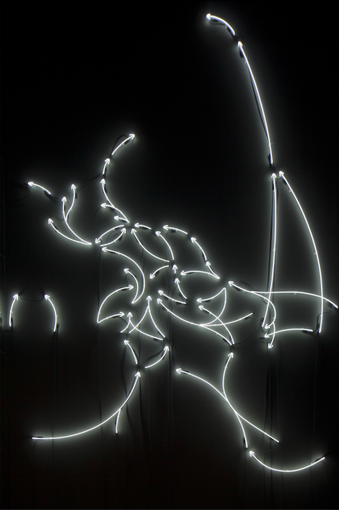 Alfredo Jaar (*1956 in Santiago de Chile, Chile) lives and works in New York. He is an artist, architect, and filmmaker. After studying architecture in Santiago and completing film training at the Instituto Chileno Norteamericano de Cultura, he emigrated to the United States in 1982. Jaar creates works that make social tensions visible. His subjects include raw materials, migration, political violence, and global inequality – articulated through image, space, and language. His installations and interventions reveal realities without illustrating them; their formal clarity brings underlying complexities into sharper focus. Language plays a central role in Jaar’s practice. For him, text is not an accessory but a carrier of meaning and often part of the conceptual structure itself. In many works, he uses text – frequently in neon or as projection – as a spatially dominant interruption or commentary. (Kindness) of (Strangers) (2015) is based on a migration map from the same year. Neon arrows trace the refugee movements toward Europe triggered by the Syrian civil war – from south to north, across the Mediterranean and the Balkan route. Yet the diagram conceals the complex causes of global mobility. An accompanying map decodes the seemingly abstract composition as a visual condensation of real routes and a precise image of global redistribution. The work remains strikingly relevant today – amid new borders, new wars, new walls, and renewed waves of migration. It evokes associations of home, exile, and interconnection, of tourism and global circulation, and of the unequal distribution of opportunities. Jaar has exhibited widely, including at the Biennale di Venezia (1986, 2007, 2009, 2013), the Bienal de São Paulo (1987, 1989, 2010, 2021), and documenta 8 and 11 in Kassel (1987, 2002). Major solo exhibitions have been held at the New Museum, New York (1992); Moderna Museet, Stockholm (1994); Museum of Contemporary Art, Chicago (1995); Musée des Beaux-Arts, Lausanne (2007); KIASMA Museum of Contemporary Art, Helsinki (2014); and Zeitz MOCAA, Cape Town (2020), bei SESC Pompeia, São Paulo (2021), im MOCA Hiroshima (2023) und zuletzt im KINDL, Berlin (2024).