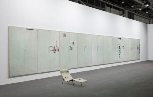 Mark Manders (*1968 in Volkel, the Netherlands) lives and works in Ronse, Belgium. He grew up in the province of North Brabant and studied graphic design and fine arts at the Hogeschool voor de Kunsten in Arnhem. Even as a teenager, he worked in a graphic design studio – an early exposure to language, typography, and layout that has deeply influenced his artistic practice. Since 1986, Manders has pursued the concept Self-Portrait as a Building – an imaginary structure in which rooms, figures, and objects appear as fragments of a continuously evolving self-portrait. His sculptures, installations, architectural plans, drawings, and publications resemble snapshots: surreal still lifes composed of furniture elements, newspapers, modeled heads, and archaic objects. The materials are deceptive – bronze appears like dried clay, wood like painted canvas. Manders often scales his objects to exactly 88% of their original size, creating a subtly alienating effect. In Room with All Existing Words (2005–2022), one encounters a decades-long project devoted to language. The work consists of twenty large, pale mint-colored doors, before which stands a deck chair. The chair is constructed (or possibly covered) with newspapers that purportedly contain every word from an English dictionary. Among them is the rare, nearly forgotten word “skiapod,” referring to a failed myth that did not survive – the image of a fabulous creature with only one leg, capable of running at great speed. Manders represented the Netherlands at the 2013 Venice Biennale. Major solo exhibitions of his work have been held at the Art Institute of Chicago (2003), Hammer Museum, Los Angeles (2010), Bonnefantenmuseum, Maastricht (2020), Museum of Contemporary Art Tokyo (2021), and Museum Voorlinden (2025/26).