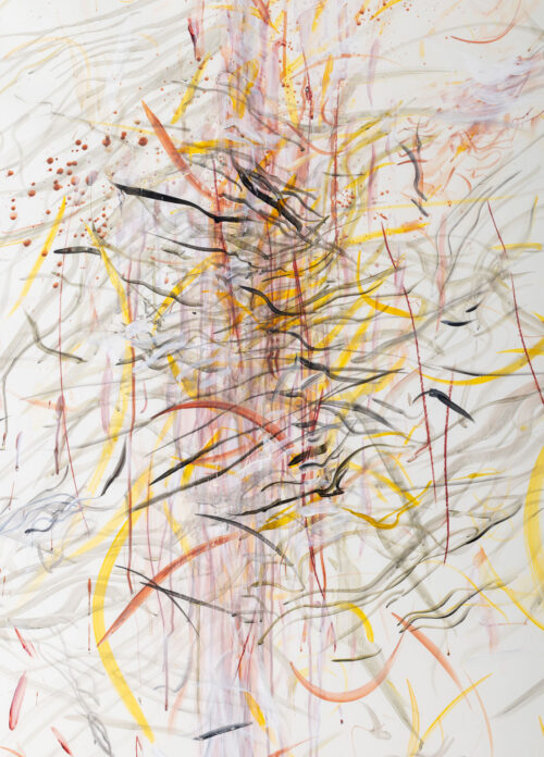 Fabienne Verdier (*1962 in Paris, France) lives and works near Paris. She studied painting at the École des Beaux-Arts in Toulouse. In 1984, she received a scholarship to study in China, where she became the first European woman to train with traditional calligraphers in Chongqing – among them Huang Yuan, one of the last masters of ink painting to survive the Cultural Revolution. Verdier remained in China for ten years, learning the “language of the line,” the discipline of gesture, and a deep material sensitivity to paper and ink—experiences she later recounted in her autobiographical book Passagère du silence (“Signs of Silence,” 2003). After returning from China, Verdier began to rethink two visual traditions: the disciplined, sign-based calligraphy of the East and the gestural, bodily painting of Western Informel. Rather than fusing them into a synthesis, she lets their attitudes encounter each other in productive tension. Her large-scale works are created on the floor with oversized brushes suspended from pulleys, guided in a single, concentrated movement. The line becomes an event—an impulse, a movement, a flow of energy. Verdier’s grande geste is not primarily an act of virtuosity, but one of inner concentration. Calligraphic discipline transforms into abstract energy; Western Informel becomes a meditative structure. It is precisely this tension—between control and release, East and West, form and gesture—that gives her painting its distinctive voice. Verdier’s works have been shown, among others, at the Pinakothek der Moderne, Munich; in Königsklasse II (2014) and III (2017) at the Benediktbeuern Monastery; at the Musée Granet, Aix-en-Provence (2019); the Musée Camille Claudel, Nogent-sur-Seine (2022); the Saarlandmuseum – Moderne Galerie, Saarbrücken (2022–2023); and the Musée Unterlinden, Colmar (2022–2023).